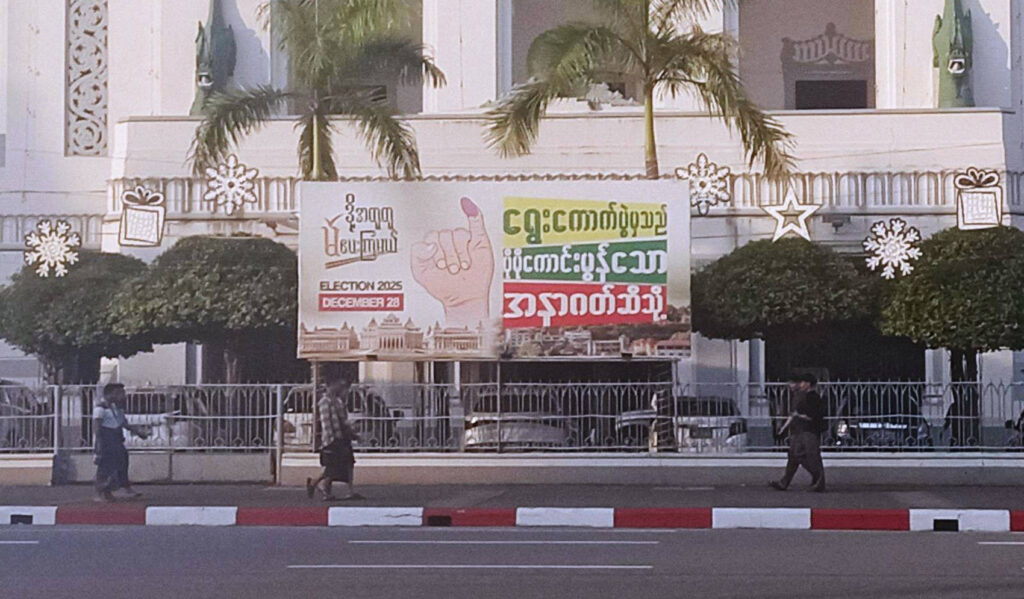 Residents say only the military proxy party and one rival are visibly campaigning ahead of Sunday's vote, as turnout drive dominates Myanmar's discredited poll.
